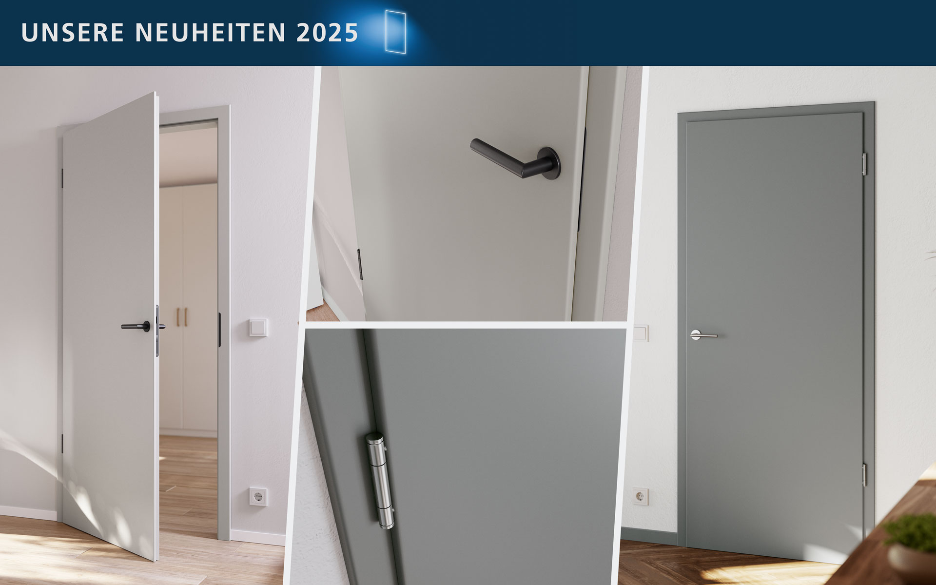UNSERE NEUHEITEN Entdecken Sie unsere Neuheiten 2025, darunter unsere neuen DuriTop-Oberflächenfarben Mondgrau SM und Himmelgrau SM – zwei elegante Nuancen, die Ihren Innentüren einen modernen und stilvollen Look verleihen. Mehr erfahren