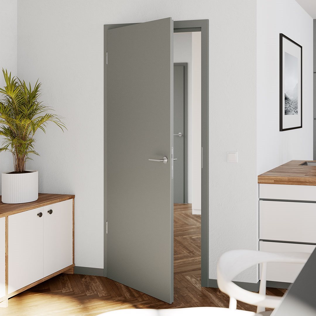 Unser DuriTop-Dekor Himmelgrau SM verleiht Innentüren einen modernen und stilvollen Look. Himmelgrau SM fügt sich harmonisch in verschiedenste Einrichtungsstile ein und setzt zugleich elegante Akzente. Ob urban, skandinavisch oder minimalistisch – diese Oberfläche unterstreicht das Design Ihrer Räume auf zeitlose Weise. Dank der robusten DuriTop-Qualität ist sie pflegeleicht, widerstandsfähig und ideal für den täglichen Gebrauch – ohne Kompromisse bei der Ästhetik.